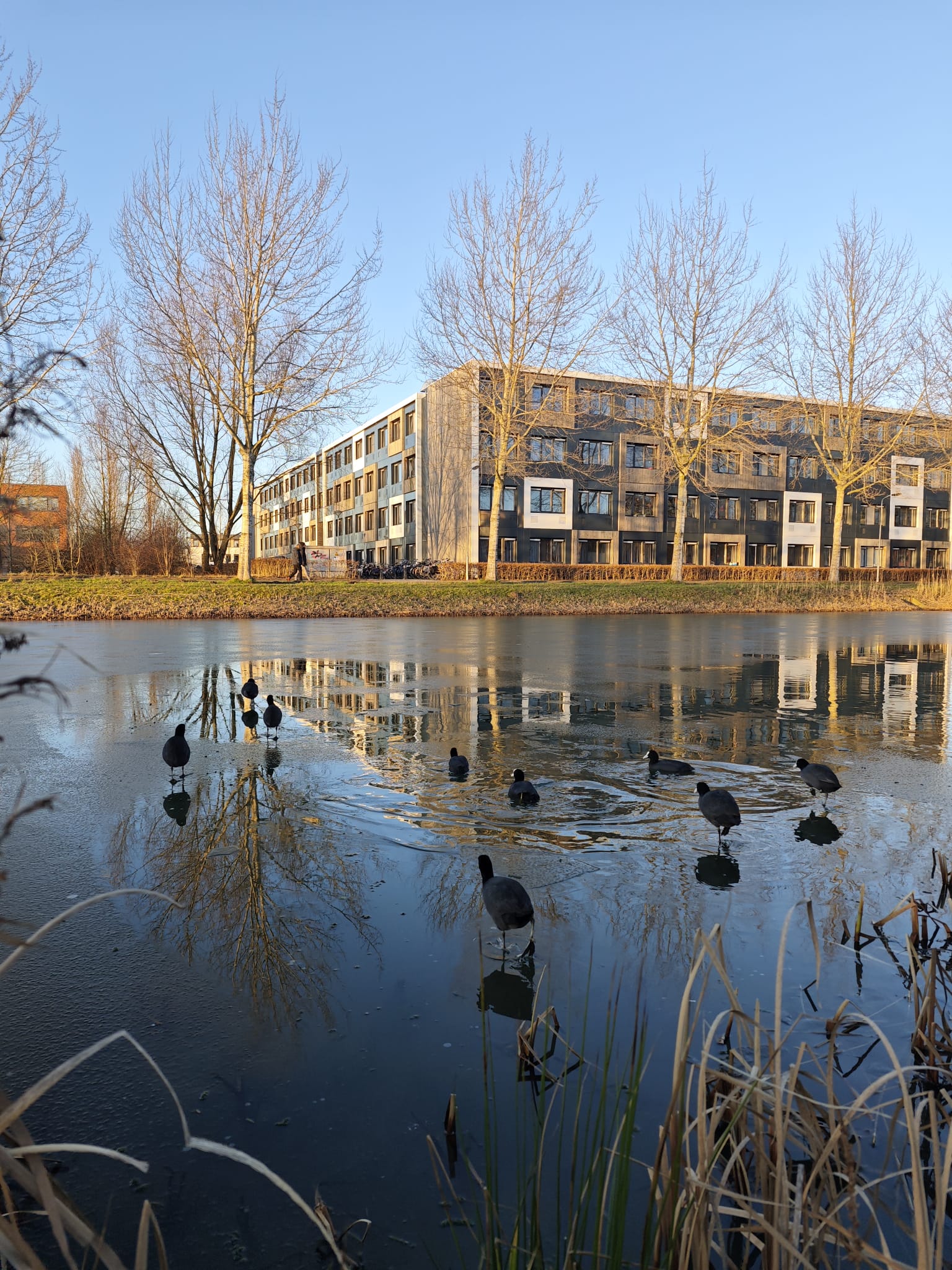 As you know, the Netherlands is famous for its canals. Wageningen, of course, also has ones in which you can see ducks, birds and geese all year round! In almost every water place, whether it is a canal, a river or a lake, you can spot them! My favourite location is the canal Stadsgracht. It is quite long, and you can either enjoy it by sitting on the grass right in front of Action or follow it downstream to the “entrance” of the city centre/church location, passing by Nudepoort park.